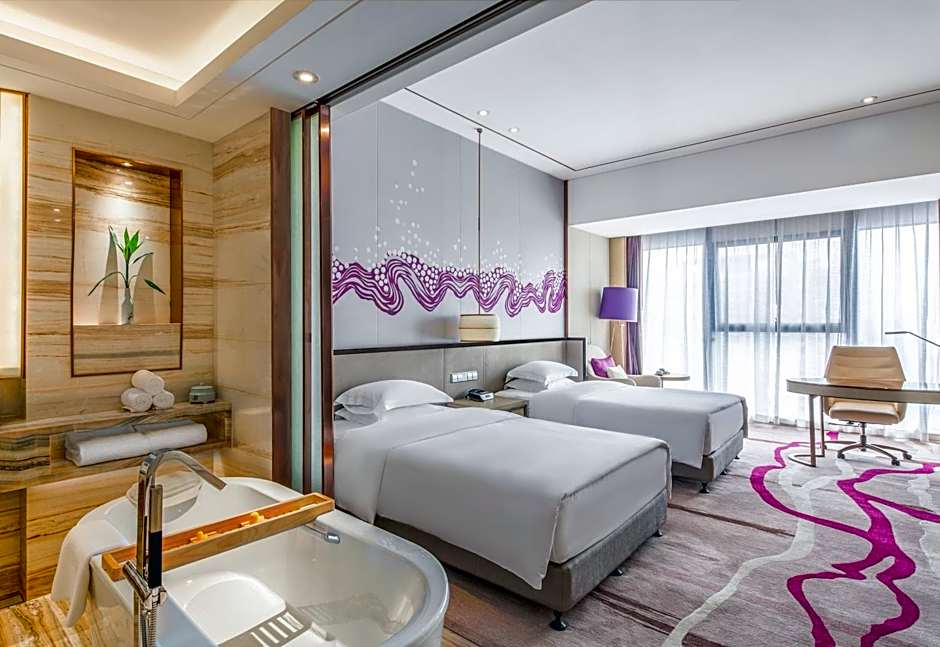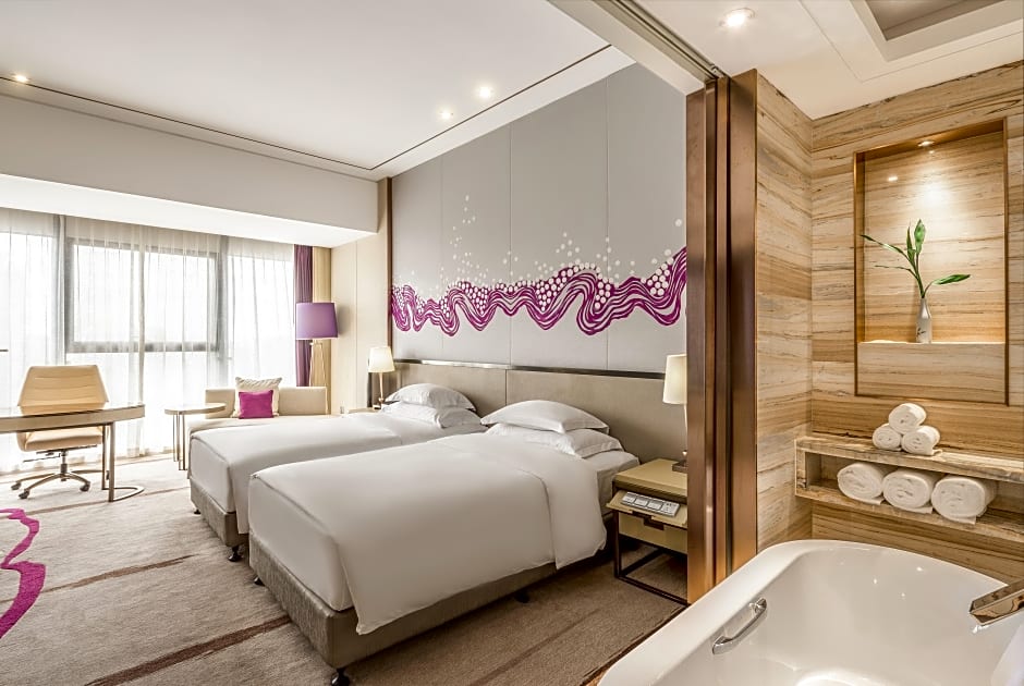 This twin room features a hot tub. Featuring free toiletries and bathrobes, this twin room includes a private bathroom with a walk-in shower, a bath and a hairdryer. The spacious air-conditioned twin room features a flat-screen TV with cable channels, soundproof walls, a mini-bar, executive lounge access as well as city views. The unit has 2 beds.